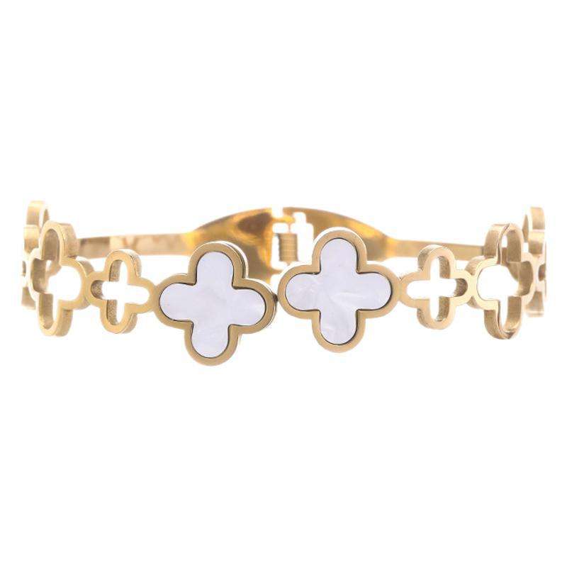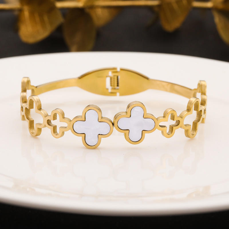 Cross-Border Gold Stainless Steel Four-Leaf Clover Hollow Design Bracelet Niche Simple Luxurious Fashion Bangle No Fade