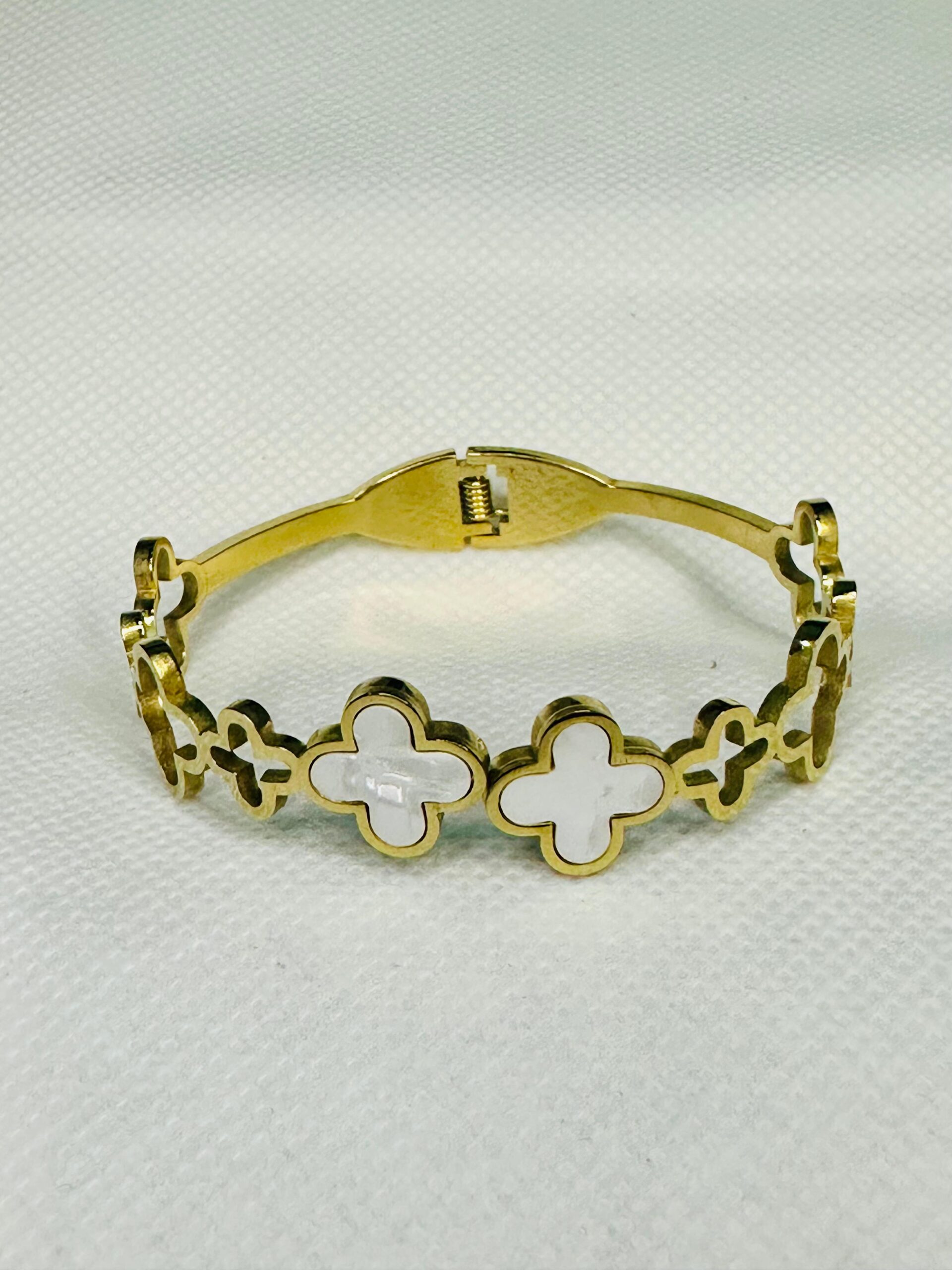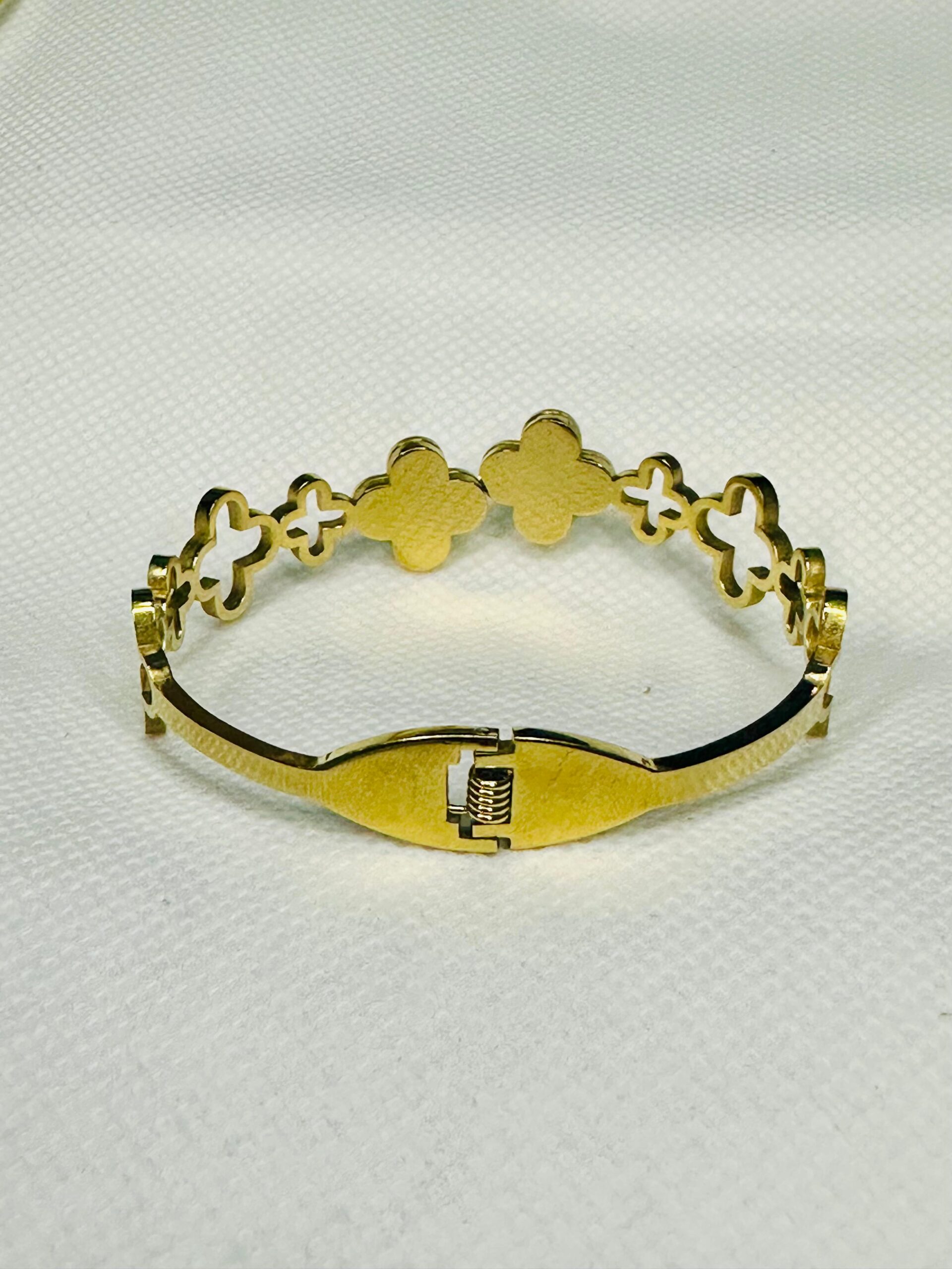Be the first to review “Cross-Border Gold Stainless Steel Four-Leaf Clover Hollow Design Bracelet Niche Simple Luxurious Fashion Bangle No Fade” Cancel reply